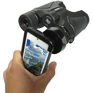 med kikaradapter för kikare med 32-50 mm diameter på okularet. Denna kikaradapter levereras med 2 utbytbara gummiringar. När du har valt en gummiring för rätt grepp på okularet, tryck fast den ordentligt och du kan se fantastiska och extraordinära bilder på din Smartphone. Perfekt för t.ex. jakt eller fågelskådning.