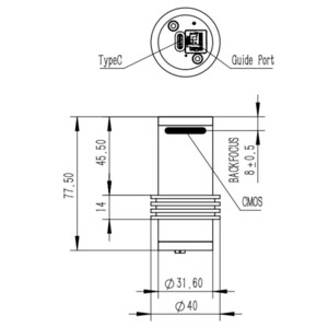 Kamera kan enkelt sättas in i 1,25-tums fokuseraren, men levereras också med c-mount-adapter.