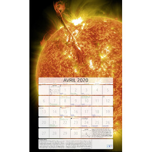 Varje månad visar en kommenterad kalender datumen för de viktigaste himlafenomenen: månens faser, planeternas positioner, éclipser, konjunktioner, årstider, essaims d'étoiles filantes etc.