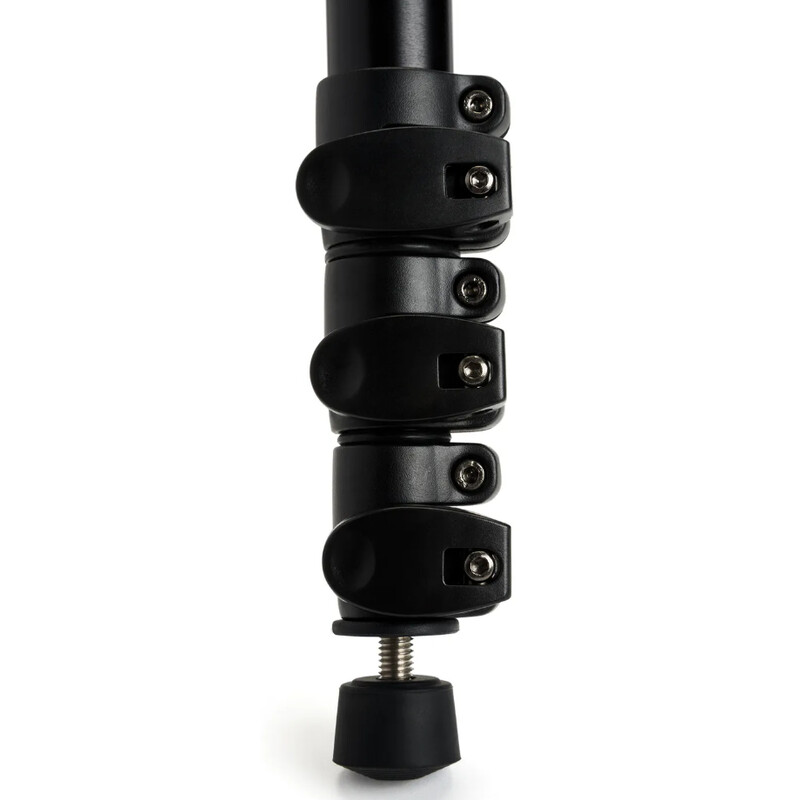 Stativets aluminiumben kan justeras i höjd och spridningsvinkel. Varje ben består av fyra segment, längden kan enkelt justeras med klämspakar så att stativet står rakt även på ojämnt underlag. Varje ben kan också fixeras i tre olika spridningsvinklar – vilket är mycket användbart om terrängen har större höjdskillnader.