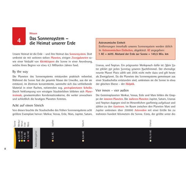 Tack vare den lättnavigerade dubbelsidiga strukturen är boken lika lämplig som uppslagsverk som som första handledning. "Hobbyastronom i 4 steg" erbjuder information om kunskap, utrustning, observation och objekttips för hobbyastronomer och de som vill bli det.