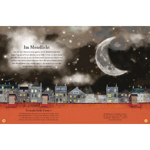 - Stämningsfulla naturbilder som får en att drömma: Från skalbaggar i månskenet till träd som blommar på natten och den mystiska månen på natthimlen – en vacker blandning av naturfoton och illustrationer låter barn upptäcka världen på natten.