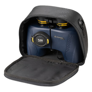 - Lättvikt med stativfäste: Den moderna och robusta höljekonstruktionen av magnesium, som väger 35 % mindre än aluminium, gör Marine- och Astro-kikaren mycket lätt. Ett stativfäste finns på mittlinjen. Med detta kan du montera kikaren stabilt på ett fotostativ med den medföljande stativadaptern.