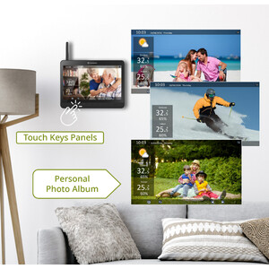 Vad gör denna digitala väderstation med regnmätare så speciell? Fotoramfunktionen förvandlar väderdisplayen till ett personligt galleri! Med den tillhörande appen kan foton överföras direkt till basstationens skärm. Den automatiska bildspelet växlar mellan vackra motiv samtidigt som viktiga väderdata visas.
