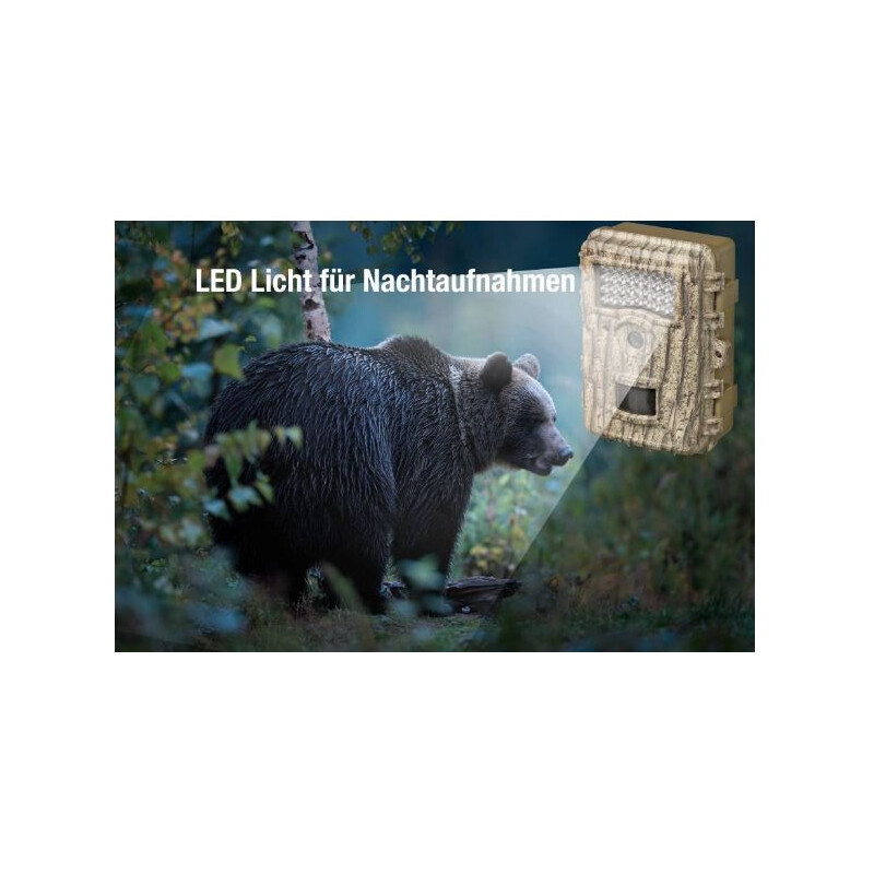 Denna digitala kamera är väl kamouflerad och utrustad med 850 nm infraröd LED-belysning, vilket gör att den kan användas både för objektskydd och för imponerande närbilder av de skyggaste skogsborna. Kameran har en rörelsesensor med en räckvidd på ca 20 m som automatiskt utlöser viltkameran vid minsta rörelse. Dessutom är den lämplig för alla årstider tack vare sitt vattentäta hölje.