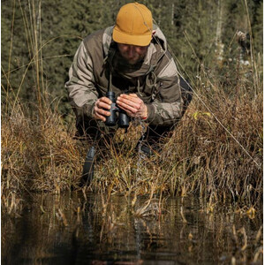 Minox X-TOUR 8x42 är den ljusstarka allroundkikaren i serien och är perfekt för jakt i skymningen, jakt från gömsle i skogen och krävande naturobservation. De 42 mm stora objektiven och den stora utgångspupillen på 5,25 mm ger en ljus och stabil bild även i dåligt ljus – ett stort plus under de första och sista minuterna av jaktdagen. Det breda synfältet på 129 m på 1 000 m underlättar snabb upptäckt av viltets rörelser, medan ED-linser säkerställer hög skärpa och exakt färgåtergivning. Det robusta magnesiumhöljet, kvävefyllningen och IPX7-vattentätheten gör kikaren helt tålig mot väder och vind. Med en vikt på upp till 685 g är det bekvämt att hålla i för ett 42-kikare för jakt.