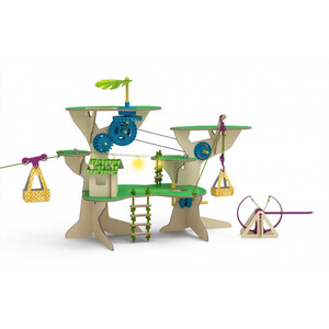 Pepper Mint besöker sin moster som bor i en trädkoja i djungeln. Trädkojan är inte ansluten till elnätet, men är utrustad med block, vinsch, rullar och kugghjul. Accompagnerad av en illustrerad berättelse utrustar flickorna trädkojan med mekaniska enheter och lär sig samtidigt grundläggande fysik. Trämodellen kan också användas oberoende av experimenten – fantasin sätter inga gränser.