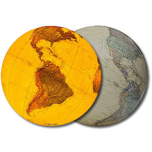 Globen Royal visar den politiska situationen på vår planet i varma färger och nostalgisk stil. De politiska gränserna träder i bakgrunden vid belysning och ett detaljerat, icke-kännbart relief av höjder och djup blir synligt.