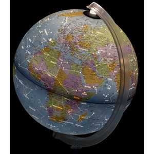 Idena lysande glob med stjärnor har två möjliga kartbilder. Den politiska kartbilden på den släckta globen visar positionerna för olika länder på jorden samt deras huvudstäder. De avbildade länderna och haven är avgränsade med olika färger. Texten är på tyska. Ekvatorn är markerad med en svart linje. När belysningen på globen är tänd visas en stjärnkarta med beteckningar för stjärnbilderna. Den upplysta stjärnglobus är en imponerande rumsdekoration och passar även perfekt som nattlampa eller lugnande nattlampa. Idena Leuchtglobus Sterne har en diameter på 25 cm och kan vridas med hjälp av hållaren på stativet. Globens totala höjd är cirka 28 cm. Inuti globen finns en energisnål och långlivad LED-lampa för belysning, som kan bytas ut vid behov. Belysningen styrs med en vippbrytare på den cirka 1,30 m långa strömkabeln.