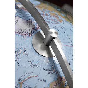 Denna mycket representativa glob, golvmodell, kombinerar på ett skickligt sätt tradition och modernitet. En traditionellt handlaminerad kula med en imponerande diameter på 75 cm kombineras med ett modernt stativ i borstat rostfritt stål.