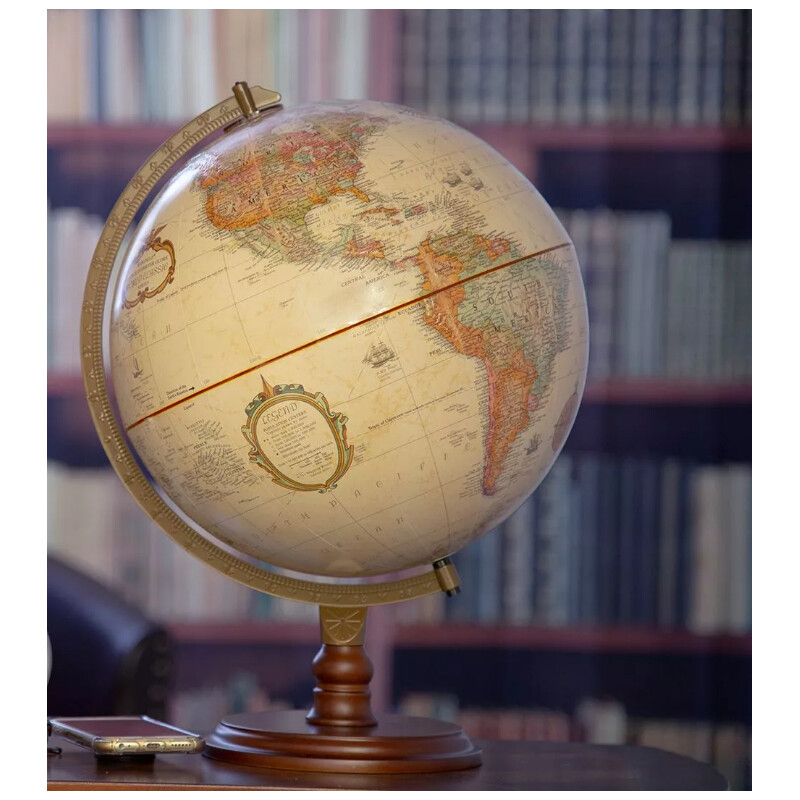 Iögonfallande färger och en mängd information väcker nyfikenheten: globen innehåller över 4 000 ortnamn och visar de politiska gränserna.