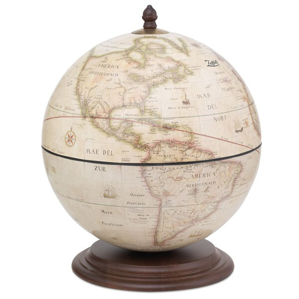 Zoffoli har behållit den vanliga användningen av latinska beteckningar, eftersom dessa utgör ett allmänt sammanbindande drag mellan de olika kartografierna. Teckningarna återger de ornamentala och mytologiska motiv som var vanliga på den tiden. Segelfartygen är en replik av de fartyg som bevisade att jorden verkligen är rund. Denna geografiska tredimensionalitet kan endast en glob återge på ett sätt som är begripligt för det mänskliga ögat.
