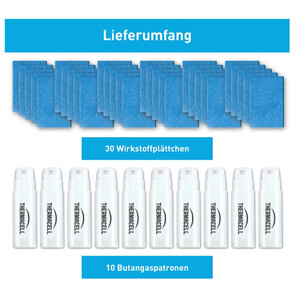 I leveransen ingår 30 aktiva plattor och 10 gaspatroner för 120 timmars drift av Thermacell-produkterna.