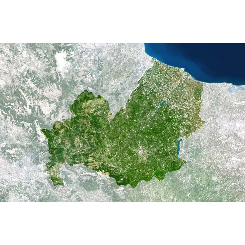 Satellitkartorna imponerar med sin extraordinära estetik.De naturliga färgerna (t.ex. vatten blått, vegetation grönt eller gult, snö vitt) återges naturtroget. Tack vare dessa färgnyanser är många geografiska detaljer lätta att urskilja (motorvägar, stora flygplatser och hamnanläggningar, floder, stora städer på posterna för de enskilda delstaterna/regionerna).
