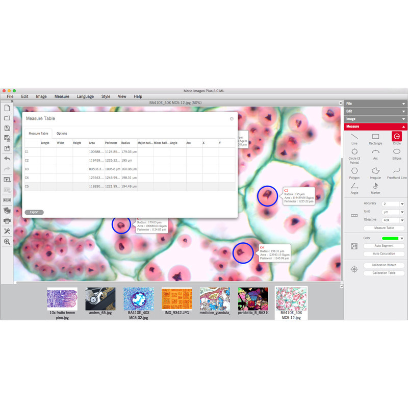 - En fullständig version av Motic Images Plus-programvaran ger dig alla verktyg du behöver för kvantifiering, mätning, märkning, undervisning, inlärning etc.