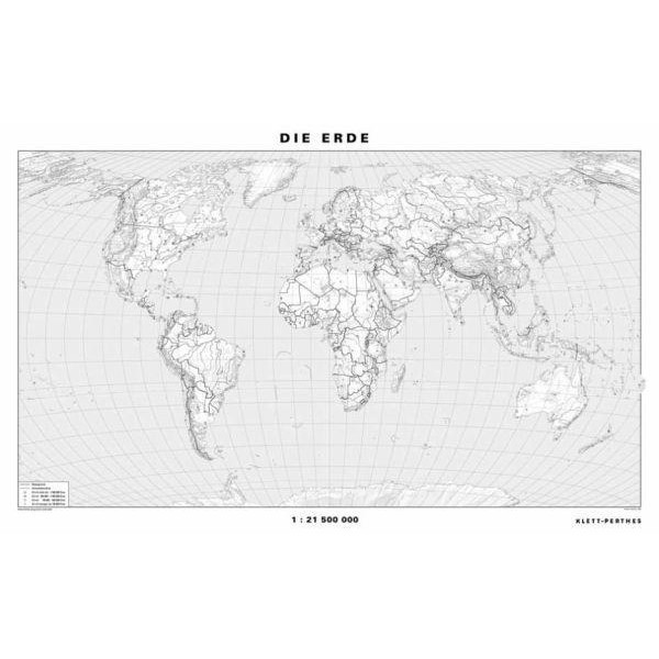 > Klett-Perthes Verlag Weltkarte Erde - physisch / stumm (ABW) 2-seitig