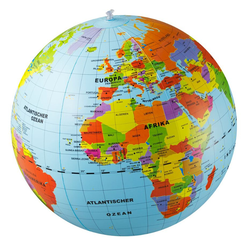 Den här uppblåsbara globen är ett roligt sätt för Kinder att lära sig om världens länder. Globen i en originell och färgglad design lär ut jordens länder, kontinenter, hav, huvudstäder och breddgrader. Det medföljer 3 spelförslag som gör det ännu lättare att lära känna vår planet.