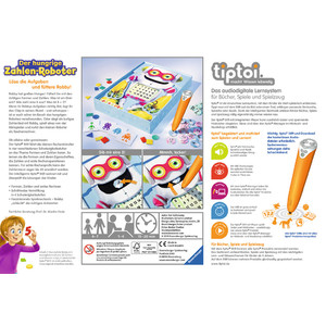 Både ensamma och tillsammans använder Kinder tiptoi®-pennan för att interaktivt välja vad de vill göra härnäst. Om de inte känner för att räkna själva kan de välja kontrollsymbolen för erfarenhetsnivån "Discover", ögat. Robby berättar då ett skämt, hans mage blir en miniräknare för de blivande mattekonstnärerna och om barnen känner för det sjunger Robby en sång med dem. Viktigt: Fungerar endast med tiptoi® penna. Pennan måste köpas separat (se våra rekommenderade tillbehör).