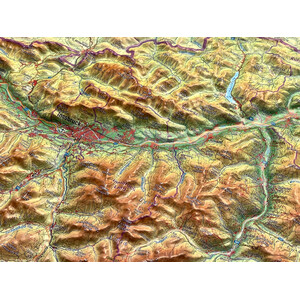 Denna reliefkarta visar de landskapliga fördelarna med denna underbara region i hjärtat av Europa.