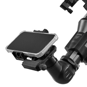 Den kanske mest spännande delen av tillbehörssatsen är smartphone-adapter. Med den kan du fästa din egen mobiltelefon direkt på okularet och ta bilder av det du observerar. Fånga månens kraterlandskap eller fotografera Jupiter med sina månar. Den medföljande Bluetooth-fjärrutlösaren säkerställer skakfria bilder. Dela din fascination för stjärnhimlen med din familj och dina vänner. Enklare kan det inte bli.
