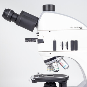 A new level of Transmitted/Incident light microscope for diverse Polarization applications: Panthera TEC POL Epi Trino is a trinocular microscope with a set of UC Plan Achromatic objectives, working with UC eyepieces of 20mm Field of View. An interchangeable 30W Halogen/3W LED light source is part of a Full-Köhler setup in Transmitted light. Incident light is provided by a compact illuminator with 3W LED light source. The Motic LightTracer system with memory function, a built-in Low-Energy mode and an LED feedback indicator helps to optimize your workflow.