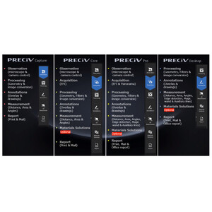 Desktop-versionen av PRECiV-programvaran är avsedd för kunder som vill efterbearbeta sina data oberoende av mikroskop med alla tillgängliga mät- och analysfunktioner, men utan kamera och bildtagningskontroll.