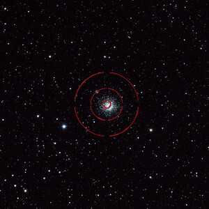 Hur hittar du objekt på himlen? Du tar en stjärnkarta och försöker hitta objektet, men du ser det inte. Radiant-sökcirklarna hjälper dig. Den inre cirkeln täcker ett område på 0,5 grader, den mellersta 2 grader och den yttre 4 grader.