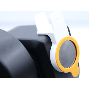 Justera solen exakt utan att riskera dina ögon. Sökaren har ingen optik. Du tittar helt enkelt på den fria öppningen på baksidan och så snart solskivan är i mitten kan du börja observera eller fotografera solen.