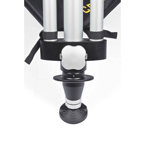 Av denna anledning är stativbenen på de nya stativen tillverkade av en särskilt hård aluminiumlegering, klämmorna för stativbenen är dramatiskt överdimensionerade - och därför har varje stativspets en särskilt trycktålig stödplatta som är fast monterad på stativspetsen så att den kan lutas.