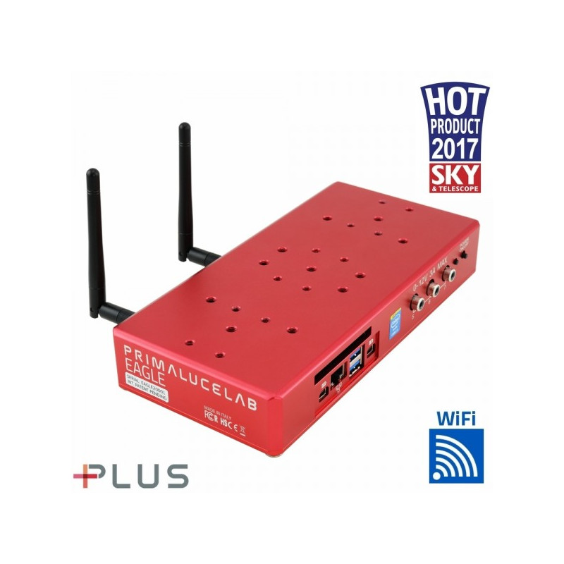 Astrofotografer känner till problemet: montering, kamera, autoguider, filterhjul, värmeband, PC och strömförsörjning... allt måste vara korrekt anslutet till varandra, vilket resulterar i en gigantisk kabelsalatt och är besvärligt att styra. Man skulle gärna vilja styra allt trådlöst, men även om man t.ex. kan fjärrstyra monteringen via tillverkarspecifika WLAN-moduler måste man fortfarande hantera bildtagningen och autoguiden via en bärbar dator som är ansluten med kablar. EAGLE är den drömlösning som vi alla har väntat på. En kompakt PC med massivt aluminiumhölje som kan monteras på all utrustning. PC:n har fyra USB 3.0- och fyra USB 2.0-portar, så att valfria tillbehör, som den kylda astrokameran eller autoguideren, kan anslutas. EAGLE är en fullfjädrad dator med operativsystemet Windows 10 Enterprise. Det betyder att du kan installera och använda vilken programvara du vill. Oavsett vilken astrofotograferingsapplikation du behöver använda med din bärbara dator, kan EAGLE göra det!