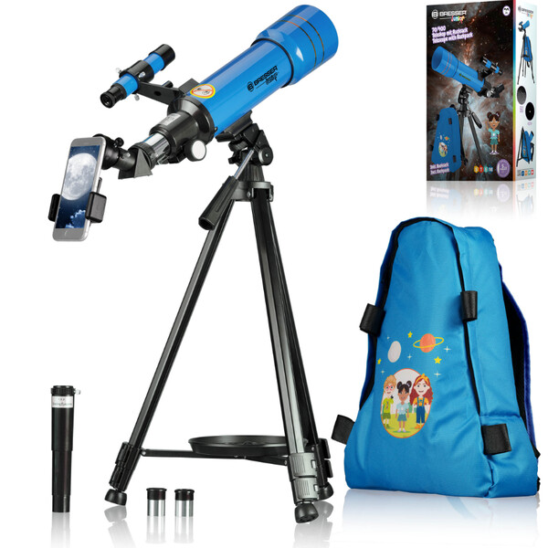 Det lätta och kompakta linse-teleskopet är enkelt att montera och låter dig snabbt se djupt in i rymden. Den azimutala monteringen är mycket enkel att använda: Teleskopet kan enkelt vridas åt vänster och höger, uppåt och nedåt för hand. Månen, Orionnebulosan eller Plejaderna – med hjälp av sökaren 5x24 behåller du överblicken över natthimlen innan du förstorar med teleskopet och kan enkelt sikta in ditt objekt. Med de tre okularen kommer du sedan steg för steg närmare månen, planeterna och stjärnorna. Du får nämligen tre olika förstoringar: 20x, 33x och 66x. Med 1,5x-vändlinsen ökas dessa ytterligare 1,5 gånger till 30x, 50x och 100x. Diagonalprismat gör det särskilt bekvämt att titta i teleskopet, även när det är riktat vertikalt mot himlen.