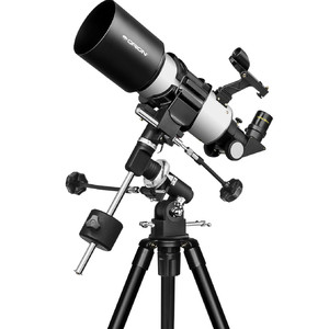 Optiken AC 80/400: En okomplicerad enhet för att titta på himlen eller observera jorden med kortaste möjliga längd. Med en objektivdiameter på 80 mm ger detta teleskop en vy ut i universums vidder till ett förmånligt pris. Tack vare den korta brännvidden kan teleskopet betecknas som ett Rich Field, eftersom det möjliggör vackra vidvinkelobservationer. Refraktorns upplösningsförmåga är redan högre än den hos 70 mm. Därmed får du också en högre detaljskärpa vid planetobservationer. Upplösningsförmågan ligger trots allt redan på 1,14 bågsekunder. Upplev Andromedagalaxen eller Orionnebulosan plastiskt framför dina ögon, för det gigantiska synfältet gör din observation till en rymdpromenad.