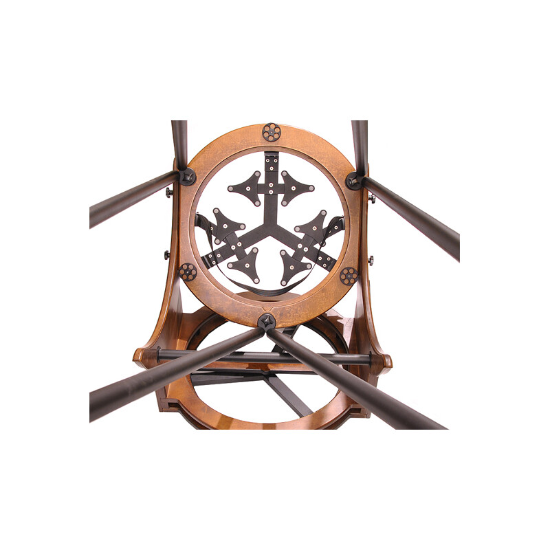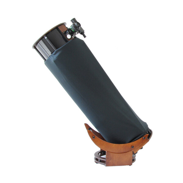 - Lätt att använda: Teflonkuddar och ett speciellt lager på basplattan möjliggör i stort sett friktionsfri spårning även vid hög förstoring. Basens motstånd (azimut) kan justeras efter individuella önskemål. Locket kan monteras i två lägen så att vyn in i fokuseraren optimeras för zenit eller horisont. Eftersom primärspegeln är sittmöblerad så lågt som möjligt kan den maximala höjden på okularvyn hållas så låg som möjligt.