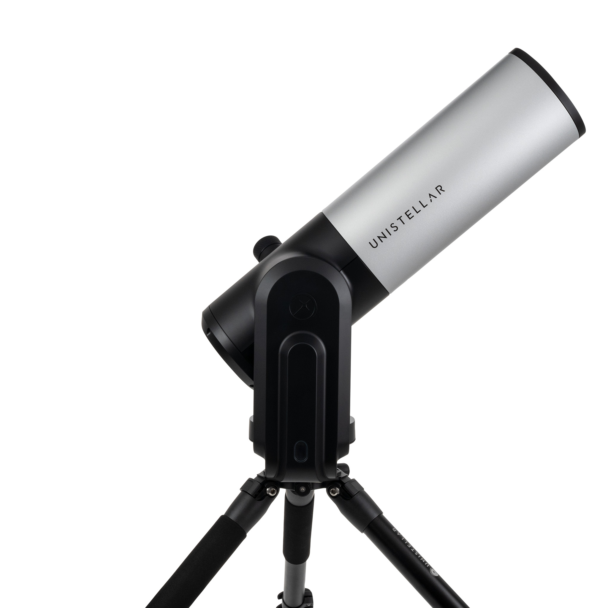 Unistellar eVscope är en genial kombination av traditionellt GoTo-teleskop och modern teknik. Det svaga ljuset från avlägsna galaxer och nebulosor samlas upp av teleskopet, registreras av en högkänslig sensor och projiceras genom okularet med hjälp av en modern OLED-skärm. På så sätt förenas fördelarna med datorstyrd teleskopstyrning och bildförstärkning med klassisk observation.