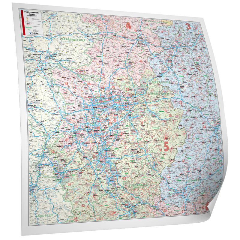 > Bacher Verlag Regionkarta Nordrhein-Westphalen med postnummer (152 x 150 cm)