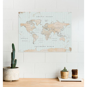 Old School: åldrad, shabby chic med en pastellfärgad, färgglad världskarta.