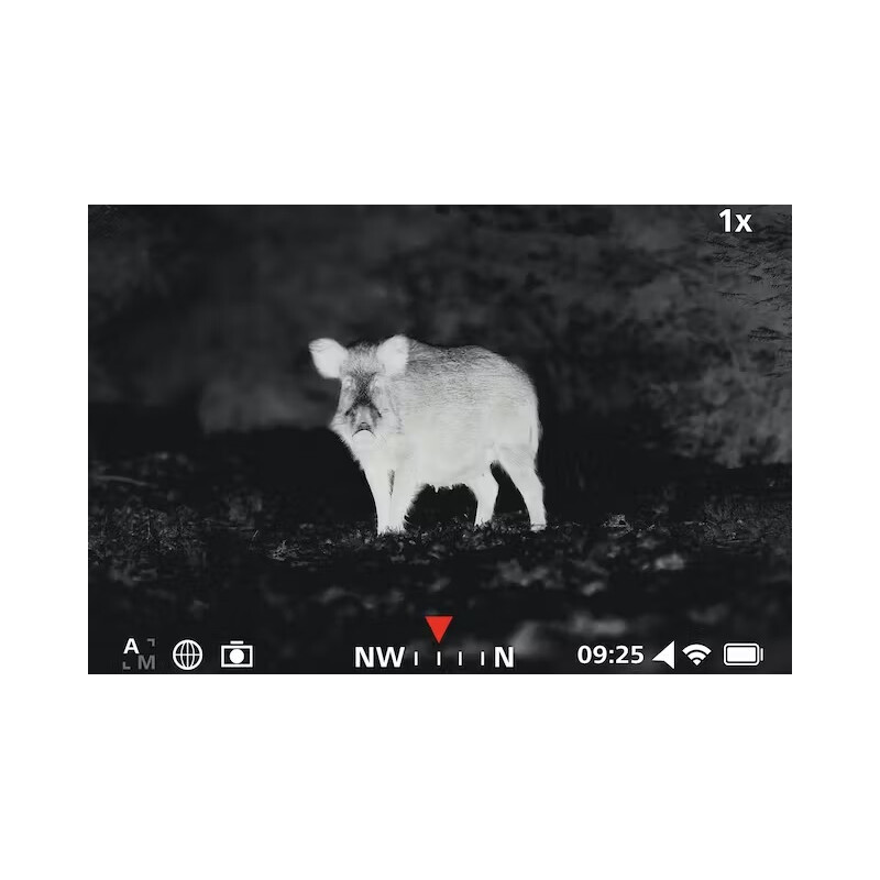 Vid jakt är det viktigaste att veta var ett djur befinner sig. Ibland är djur svåra att upptäcka eftersom de bara är delvis synliga. Detekteringsläget framhäver värmekällor ännu tydligare och reducerar samtidigt den kalla bakgrunden. På så sätt kan du upptäcka djur bakom träd och buskar bättre än tidigare.